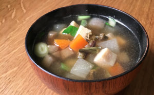 - 5 醤油を加えて20~30分ほど煮たら、器に盛り、みつばを添える