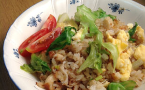 - 3 ②を中火にかけ、へらで混ぜながら肉の色が変わるまで火を通す