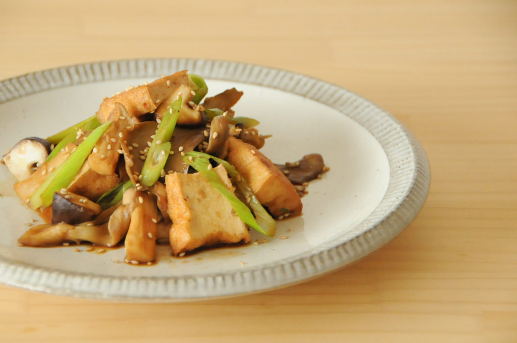 厚揚げときのこの炒め煮は、たっぷりのきのこと厚揚げを使った、食べ応えのある甘辛おかずです。オイスターソースと合わせたのは、濃厚な再仕込醤油。オイスターソースのコクとうま味、そして再仕込醤油ならではの濃厚で深い味わいが、絶妙なバランスで絡み合います。醤油のしっかりとした存在感を感じつつも、オイスターソースが全体を包み込み、きのこの風味を引き立ててくれるのが魅力です。