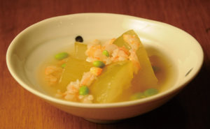白身魚にレモン醤油とオリーブオイルをかけてカルパッチョに。すりおろしにんにくを加えてタコのカルパッチョにもよく合いますし、サラダのドレッシングとしても使えます。