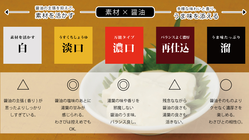 シンプルに生湯葉をわさび醤油でいただくなら、やっぱり醤油にこだわりたい。ということで、検証スタートです。