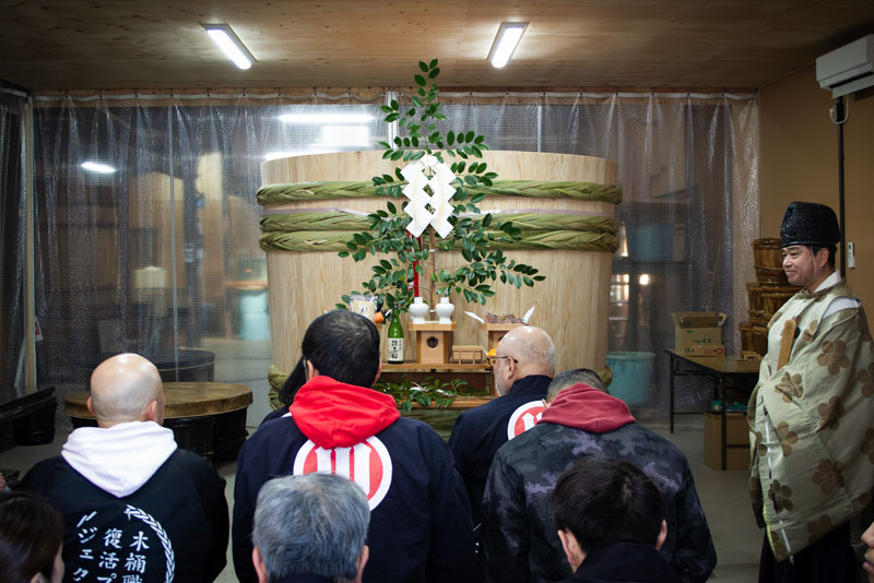クラウドファンディングの支援者の方、お取引先様、ご近所のみなさま、報道関係者の方々。そして小豆島からは木桶職人さんたちも参列してくださいました。