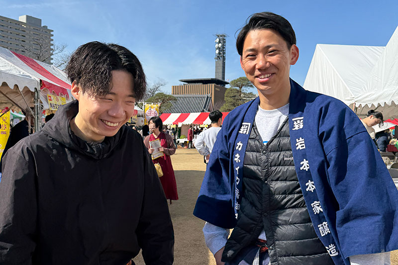 それは、この企画の中心になっているのが五味醤油の五味ちゃんというのが大きいのだろうと思います。今回は「職人醤油」としての出展だったのですが、日東醸造(愛知県)の蜷川泰輔さんと、カネイワ醤油本店(和歌山県)の岩本庄平さんも駆けつけてくれました。その経緯を聞けば、五味ちゃんから「ちょっと来ちゃいなよ」と本当に軽い感じで誘われたからだそうです。