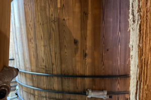 そう言って案内してくださったのは、昨年入れ替えた木桶の床板。よく見ると、一部分だけ床の色が違っていました。木桶職人の仕事は、ただ木桶をつくるだけではない。その桶がきちんと息をして、発酵を支え続けられるように、蔵の環境そのものを整えることも、また職人の仕事なのだということを、あらためて実感しました。