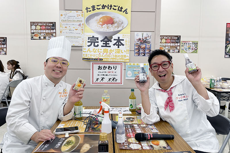 今年からトークイベントも新設されていました。日本たまごかけごはん研究所の上野さんとクック井上さん。クックさんのトークは相変わらずキレキレで会場も大盛り上がり!