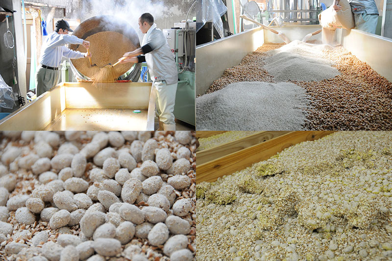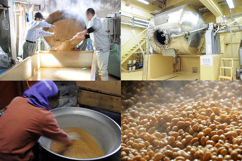 昔は、大豆は「煮る」作業だったそうですが、現代は「蒸す」ことが一般的です。その方が効率的に大豆に含まれるたんぱく質をうま味成分のアミノ酸に分解できるからです。そして、この大豆を蒸す工程は難しいと言われ、蒸しすぎると大豆はべちゃべちゃになってしまい、蒸しが不足すると硬いままに。