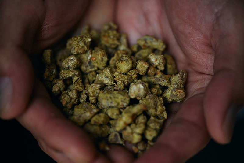 約3日の時間をかけて麹菌を繁殖させて醤油麹をつくります。その目的は麹菌に酵素をつくりだしてもらうこと。この酵素が大豆のたんぱく質をアミノ酸に、小麦のでんぷんをブドウ糖に分解してくれます。そのため、この工程の良し悪しが品質に与える影響度が高く、特に重要視されています。