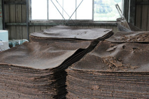 木材の切り出しは専門の職人がやっていたそうです。桶づくりには丸太の断面から見た時に、赤身と白太の境界線が通る材が最上級とされていて、住宅建材などに使う木材の切り出しとは異なります。