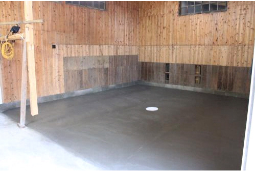 下の写真は先日の床工事 直後。 左側に1本柱がありますが、コンクリートを施すために下部を切断していました。