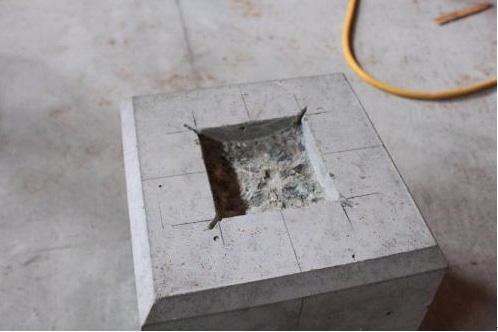 束石の上部には切込みが入っていて、逆に柱は凸の状態に細工してガッチリ固定します。