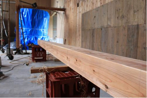 柱を据えた場所はスペース的に桶が入らないので、塩水を調整する場所か 圧搾する諸味を入れるタンクを置く場所、とかにしようと考え中。