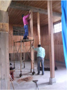 作業性を考えると柱は無いほうが良いのですが、 大工さん曰く「建物の構造的に柱は必要。」ということで、2つ立てることになりました。