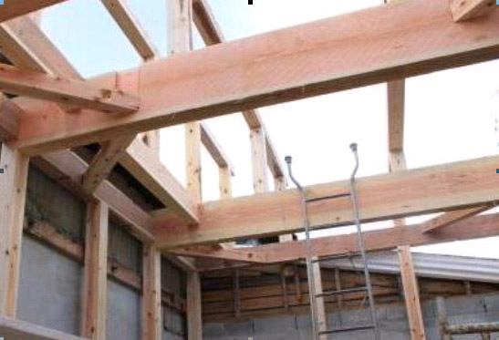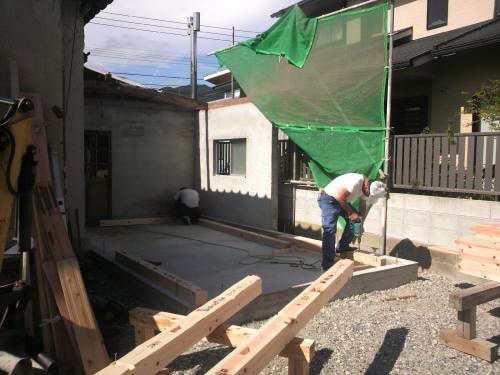 いよいよ本格的な工事がスタート。壁の柱を立てます。