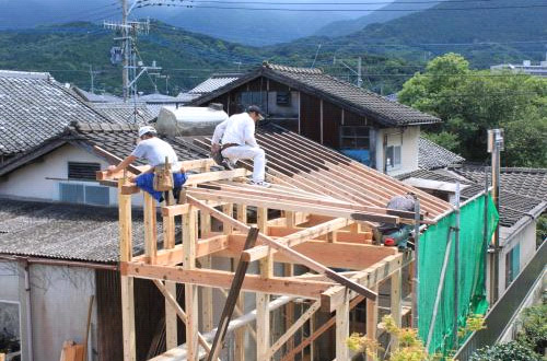 前回、大方の土台が出来て、今度は屋根の枠組み。