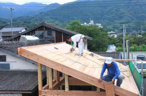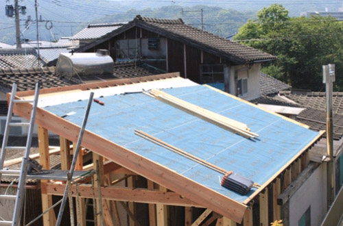 そして、防水のシートを敷いてその上に瓦を乗せます。