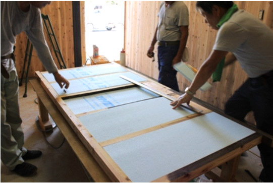 入り口の戸の作成。 一般的な戸よりも分厚く、中には断熱材を入れます。