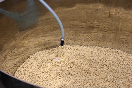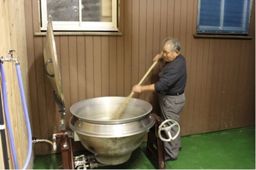 小麦を炒っているのは、職人醤油にも参加されている岡本醤油のご主人、岡本義弘さん。岡本醤油さんは僕が大学を出て、1年間お世話になったお醤油屋さんです。