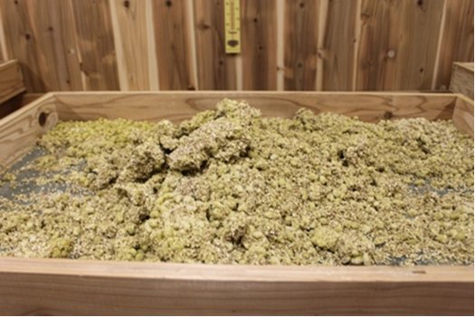 一通り終わったので、室の中で大きなパレットに麹を移します。