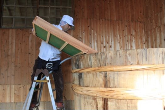 仕込み終了後、桶の上から。