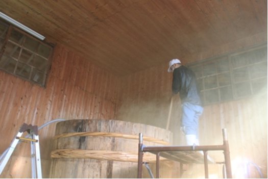 写真で白っぽくっているのは、麹の胞子が舞っているから。