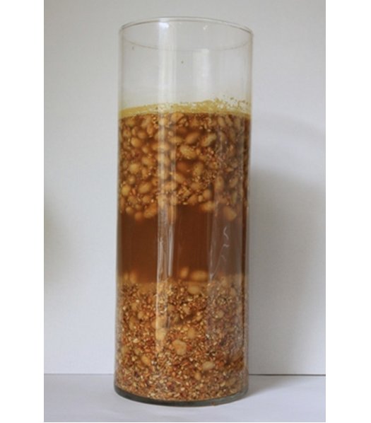 見学者の方に桶の中の状況を分かりやすく伝えるため、花瓶に諸味を入れてみました。