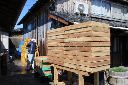 醤油の麹作りに使った、麹箱を洗浄しました。