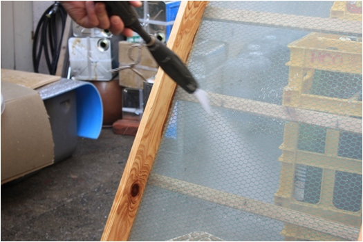 これをタワシなんかでやったら相当な時間がかかりますが、高圧洗浄なら一瞬 で小麦が吹き飛びます。
