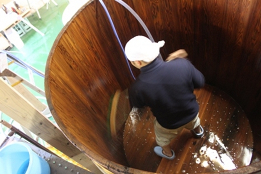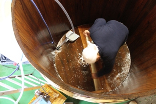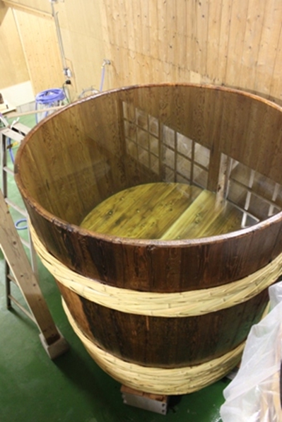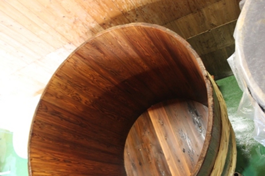 そして、桶に水を張って木に水を吸わせます。昨年仕込んだ桶はこの段階でかなり漏れていましたが、今回はまったく漏れず。