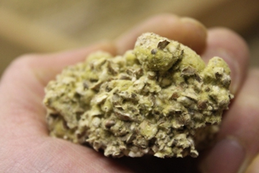 外に出して麹の状況を撮影。大豆を覆っているのは麹菌の菌糸。
