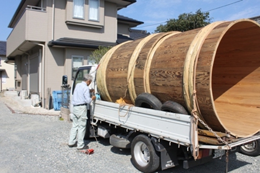 そして、今年も仕込みに使う桶(20石×2)をウッドワークの上芝さんが届けてくれました。