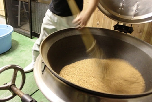 一般の方は醤油=大豆。というイメージが強いみたいですが、一般的な濃口醤油では、大豆と同じ量の小麦が使われてます。 小麦のデンプン質が製麹中の麹菌、諸味での乳酸菌・酵母など、重要な働きをする微生物の栄養源となります。なので、小麦はとても重要なんです。