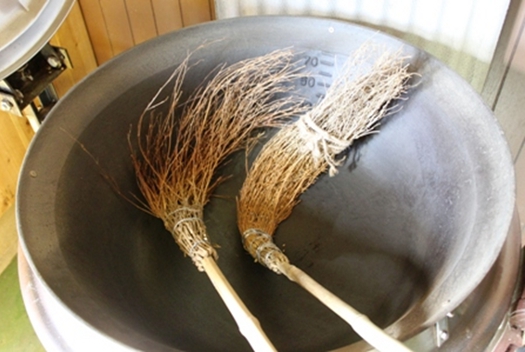 昨年まで、撹拌中に竹の枝がしなって小麦が窯の外に飛んでいくという事がよくありました。