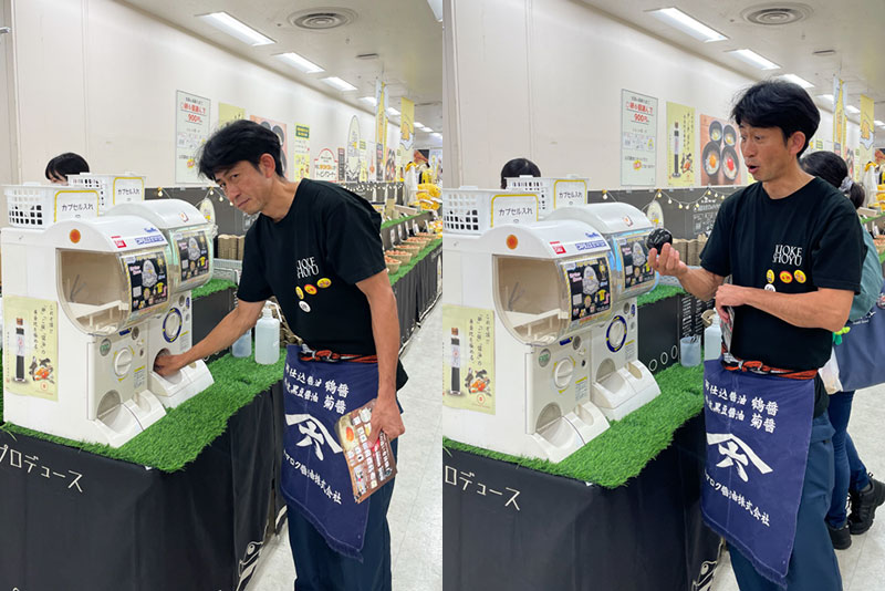 「ガチャガチャってレンタルすると結構高いんですよね…」「じゃあ、買っちゃいましょうよ!」「えっ、本気ですか?!」「あれば、何かしらに使えるんだから…」と、そんなやり取りを経てヤマロク醤油の山本さんがガチャガチャマシーンを衝動買いしました。