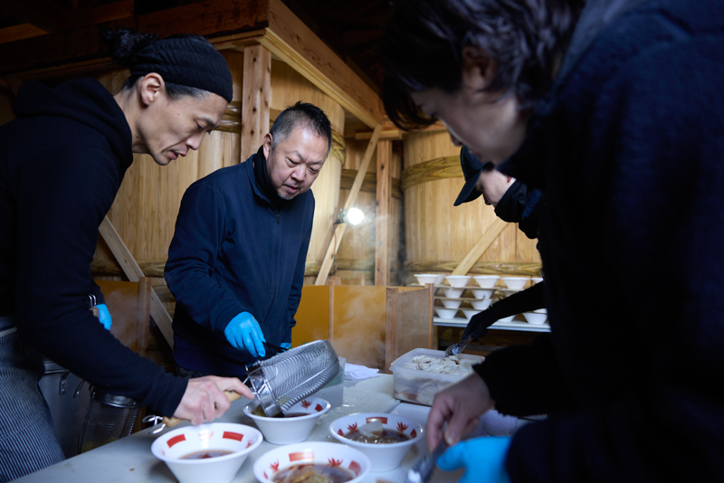 木桶サミットの恒例行事といえば、お昼の「まかないラーメン」。その「まかない」という言葉に遠慮してしまうほど、こだわりの詰まったオリジナルな一杯です。さらに、浅草橋の「饗くろ㐂」や「せたが屋」の店主自らが腕を振るうという、贅沢なラインナップが魅力です。