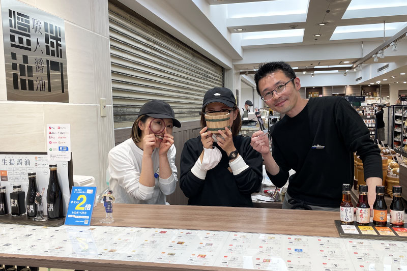 実際は、説明マニュアルをつくる時間がなかったのですが、「とにかく醤油を実際に試してみて、その感想をお客様にお伝えしよう」という形にしたことが、結果的に、私たちのスタイルを形作るきっかけになりました。スタッフ一人ひとりが自分の言葉で紹介した醤油について、お客様から「実際に使ってみてこんな料理に合いましたよ」と感想をいただくことが増え、自然と醤油の知識と紹介方法が確立されていきました。このプロセスを通じて、スタッフもお客様も一緒に成長する店舗となれたことを誇りに思っています。