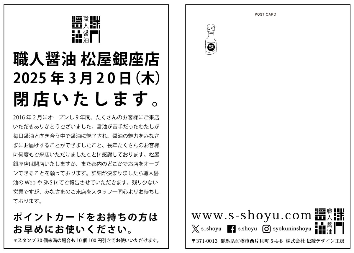 このたび松屋銀座店は閉店いたしますが、また都内のどこかで新たな拠点を構えられたらと考えています。もし「このエリアがよさそう」「こんな物件がある」などの情報がございましたら、ぜひお知らせいただけると幸いです。