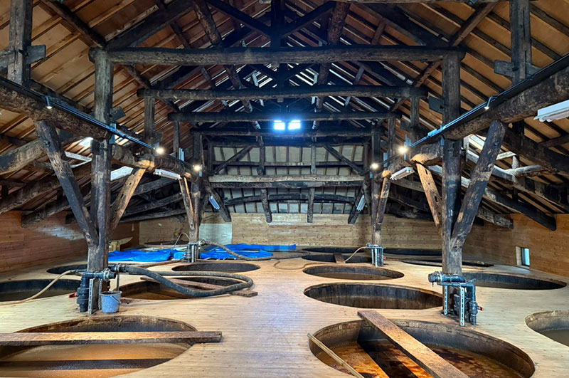 「この木桶は少し漏れがあるけれど、今はあえて掃除せずそのままにしてるんだ。木桶職人さんにみてもらうためにね」そう語る柴沼会長の眼差しは、先人から受け継いだ桶を、これから先へも繋いでいこうという強い意志に満ちていました。