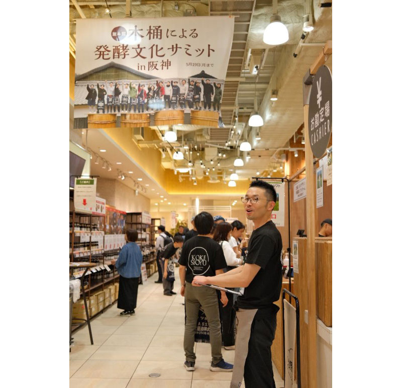 私たちにとって、阪神百貨店でのイベントは究極のファン作りイベントです。蔵元のことを知ってもらって、味噌醤油など日本の発酵食品の奥深さに触れて帰ってもらえる貴重な機会です。さらには、木桶職人復活プロジェクトの活動や、普段なかなか会うことができない蔵元との交流を通してお客さんに直接商品や蔵の魅力を伝えられるところがこのイベントの唯一無二の素晴らしさです。