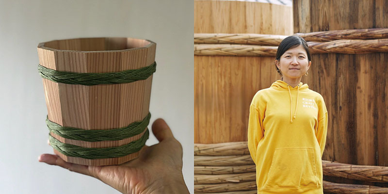 木桶づくりの現場で生まれる杉や竹の端材を活かした「木桶のめぐみ」から生まれたワークショップ。クラフトバンドで箍(たが)編みを体験し、用意された木桶の胴体に取り付けて、手のひらサイズのミニ木桶を完成させます。講師は日々木桶と向き合う、箍(たが)細工作家である門之園さんと若手の醤油蔵元たち。木桶の話を聞きながら、自分の手で仕上げるひとときを楽しめます。