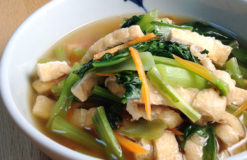 - 5 醤油を加えて20~30分ほど煮たら、器に盛り、みつばを添える