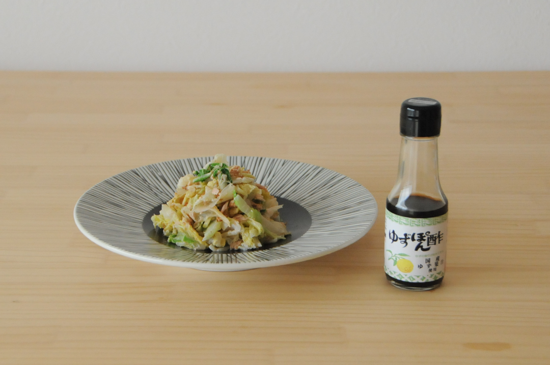 とはいえこの無限白菜、マヨネーズやツナやかつお節が入っているので、単純に白菜とぽん酢の相性というわけではないのがむずかしいところでした。好みはもちろん、白菜そのものを味わいたいか、ぽん酢の柑橘感を味わいたいか、ツナのうま味を味わいたいか…それによっても使いたいぽん酢は変わってくると思います。