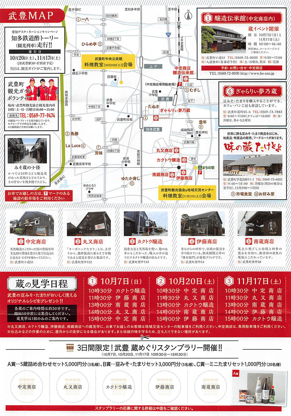 2018年10月1日~11月30日にかけての武豊町の秋のキャンペーンのお知らせです。溜醤油と豆味噌の産地として有名な愛知県武豊町。地元の料理人が手掛ける「たけとよめし」や、醤油蔵見学、みそ探訪家の岩木みさきさんの料理教室など、ぜひ武豊町に訪れてみてください。
