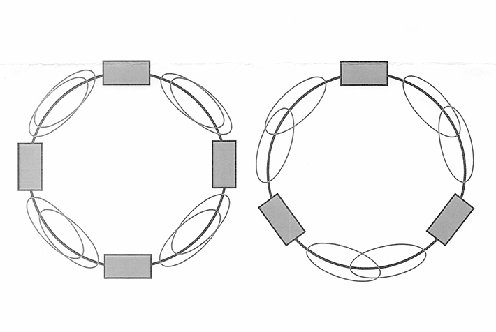 ⑤ マクラの下は桶の中心に向かって力がかかる
