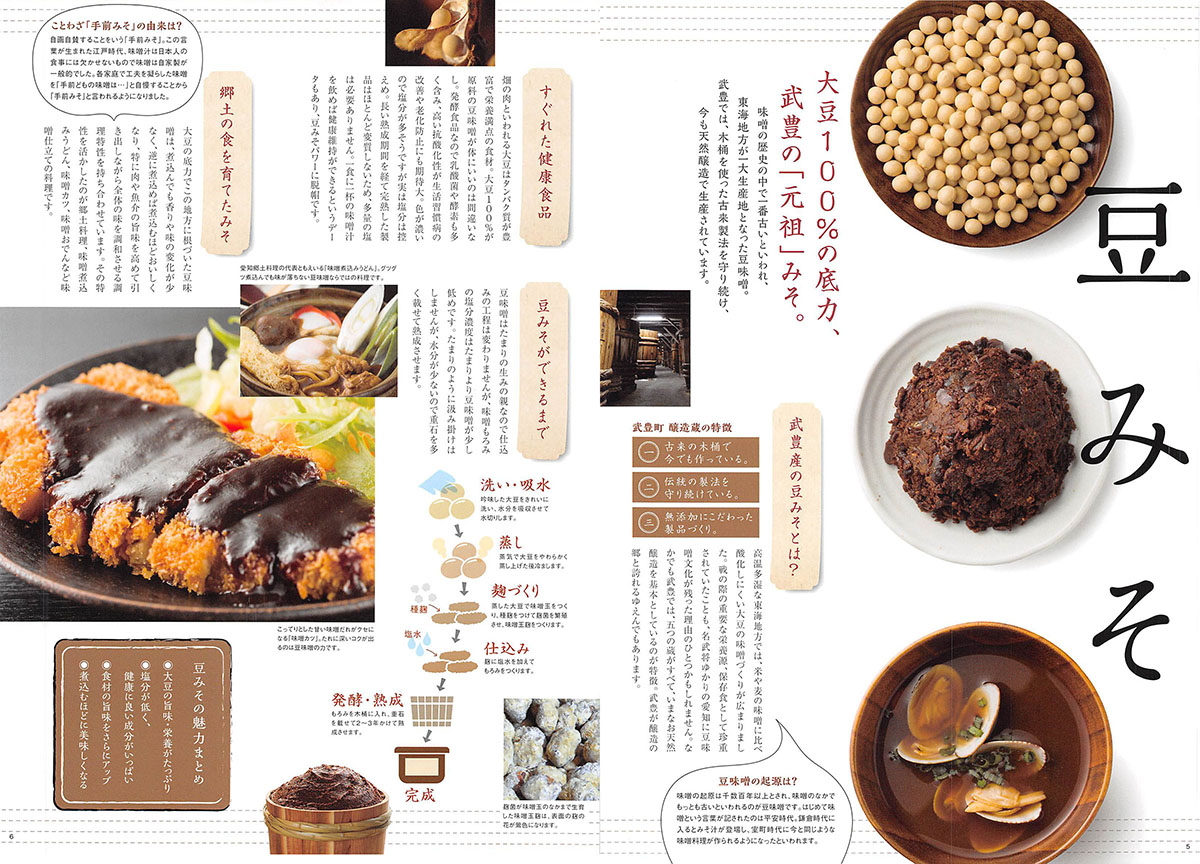 先日、武豊町役場からご連絡をいただき、この「たまり豆みそ読本」をバージョンアップさせる取り組みがスタートしたそうです。昔ながらの製法を続ける「中定商店」「丸又商店」「カクトウ醸造」「伊藤商店」「南蔵商店」の5つの伝統蔵と、「泉万醸造」「中六」「ユタカフーズ」の3つの近代蔵のそれぞれの蔵が持つストーリーや個性を紡ぎ合わせて、「武豊たまり」という共通の地域ブランドを世界に向けて発信されていくとのこと。そして、「たまり豆みそ読本」も、それにあわせてバージョンアップされるそうなので、期待大です。
