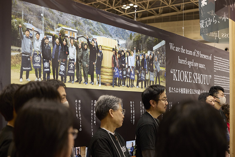 今年で3年目。木桶醤油チームでFOODEXに出展しました。例年通り、29社で大きな一つのブースを運営しようというコンセプトで、お揃いのTシャツ+自社の前掛け姿。木桶と醤油の魅力を伝えることに集中した4日間でした。