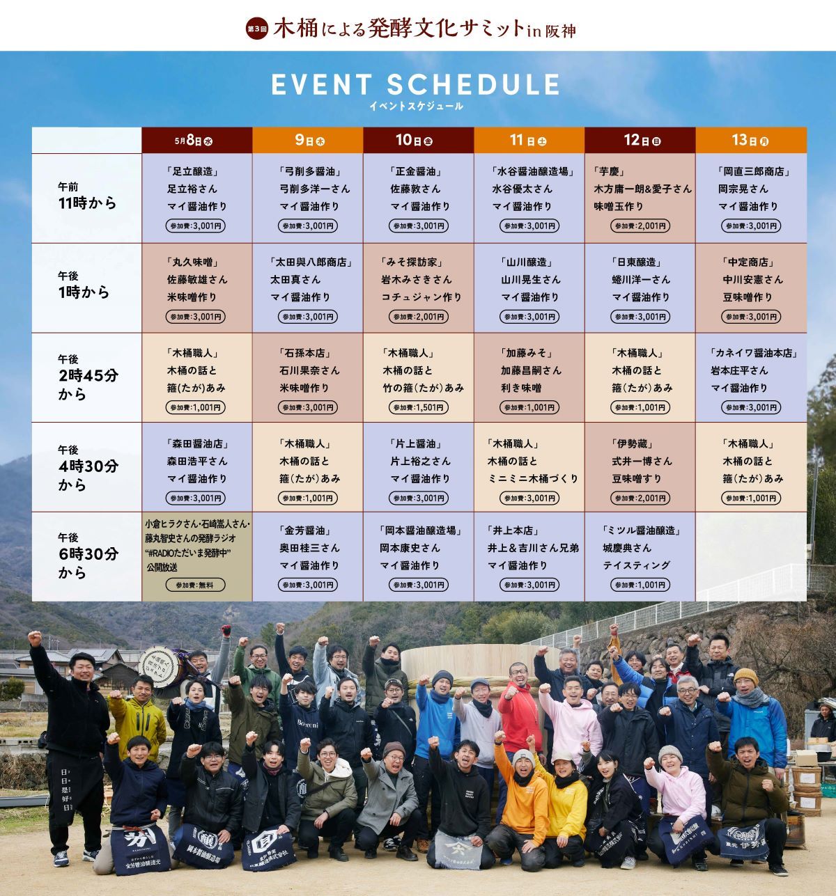 醤油や味噌の仕込みセミナーなどを合計28コマ開催。それぞれの回を各蔵元が担当したので、講師も内容も異なるセミナーでした。職人チームも1日1コマを担当して、箍編みやミニ桶づくりが行われました。