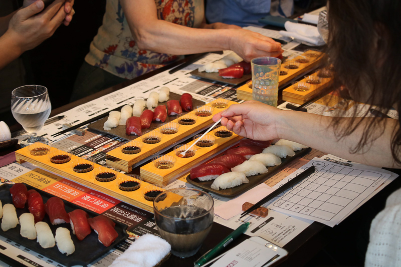 このお寿司にはどの醤油が一番合うのか?マグロの寿司と白身とでは合うお醤油は違うのでは?実際に寿司と醤油を並べて食しながら探っていこうという、そんなイベントです。