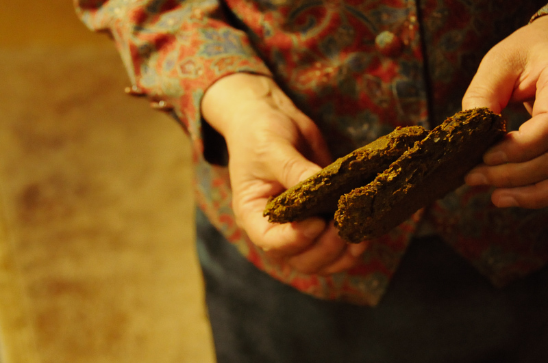 麹室の前でこんな話題になりました。「木炭の熱と光が柔らかくていいんですよねぇ~!ここで火を付けて藁をかぶせて室に運ぶんです。するとね・・・」と身振り手振りで説明してくださり・・・