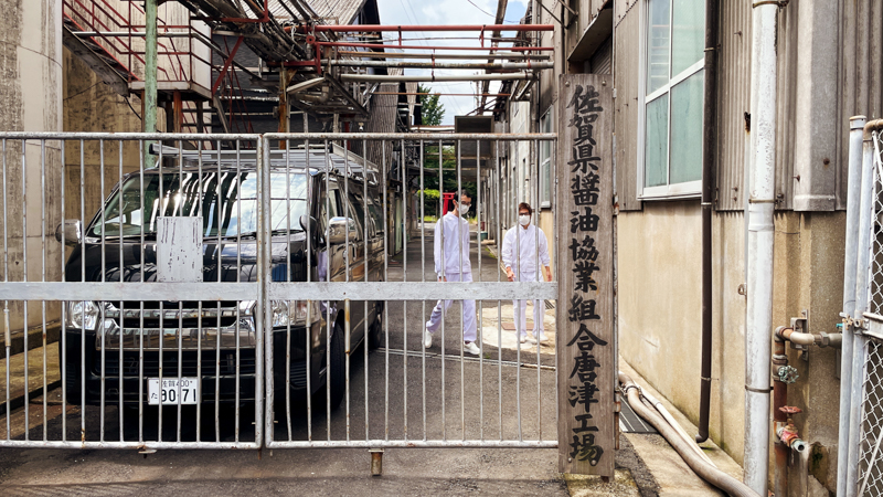 宮島醤油の本社工場に隣接する形で、佐賀県醤油協業組合があります。大きな製造設備を有し、ここでつくられた醤油が県内の醤油メーカーに運ばれて最終加工をされています。いわば佐賀県の共同工場という位置づけです。